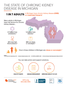 The National Kidney Foundation of Michigan (NKFM) and the Michigan Department of Health and Human Services (MDHHS) developed this public health approach to prevention with the support of many state and local partners. This 3-year initiative had a true and lasting impact on CKD in Michigan.